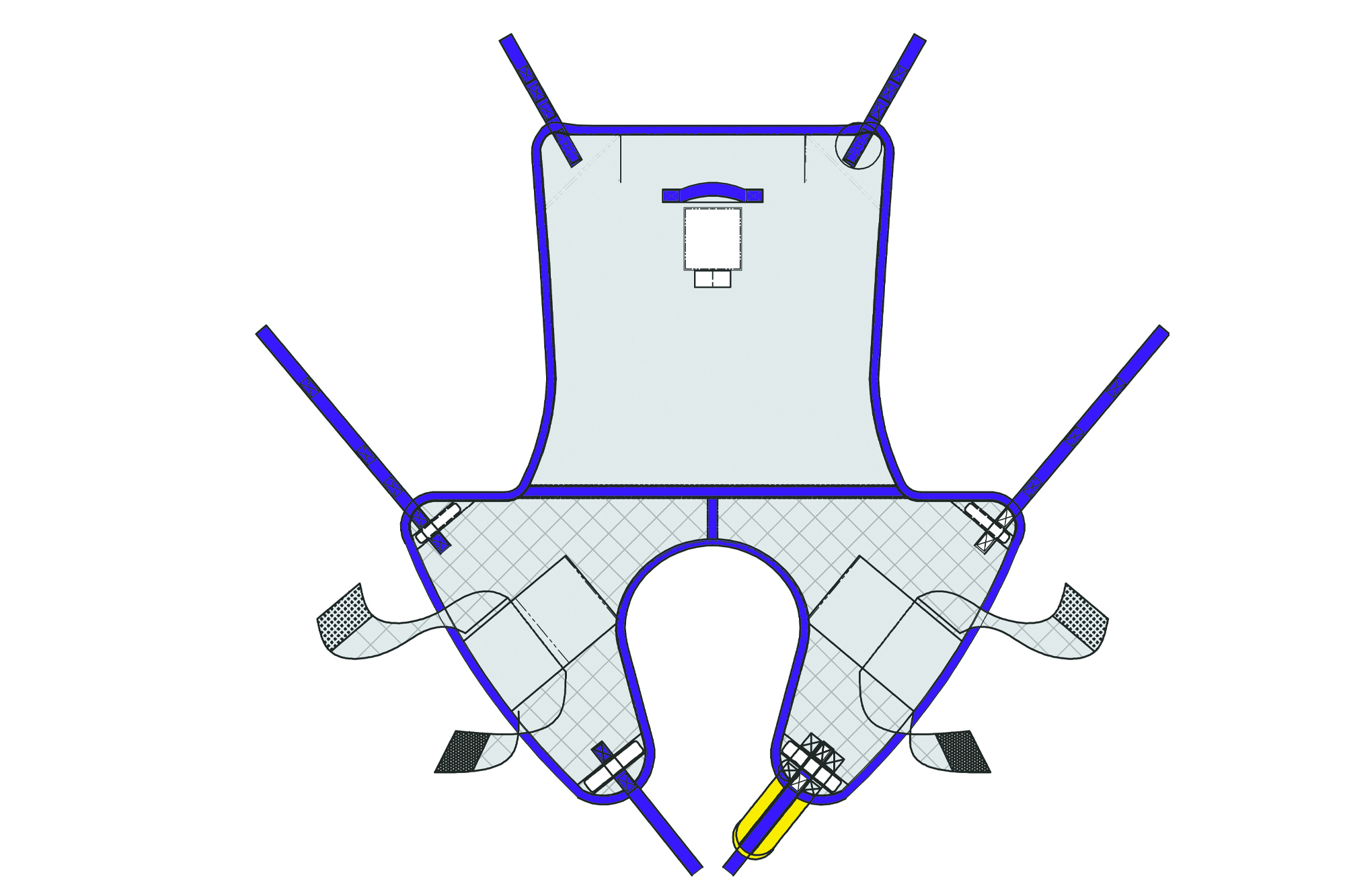 The HealthCo Supreme Fit Deluxe sling is a full sling designed with split legs and a body shape that provides a very comfortable, supportive and safety shape that reduces the risk for shear and pressure to the body. This is used for transfers where the user has little neck and head control and is also very suitable for above the knee amputees. Suitable for most transfers in a seating or laying position and where user have little neck and/or head control. The sling is for use with lifters/hoists and hanger bars with loop attachment hooks. The Supreme Fit Deluxe Sling will assist the caregiver for lifting and transfer a patient in either a sitting or laying position, from and to the bed and/or wheelchair.
